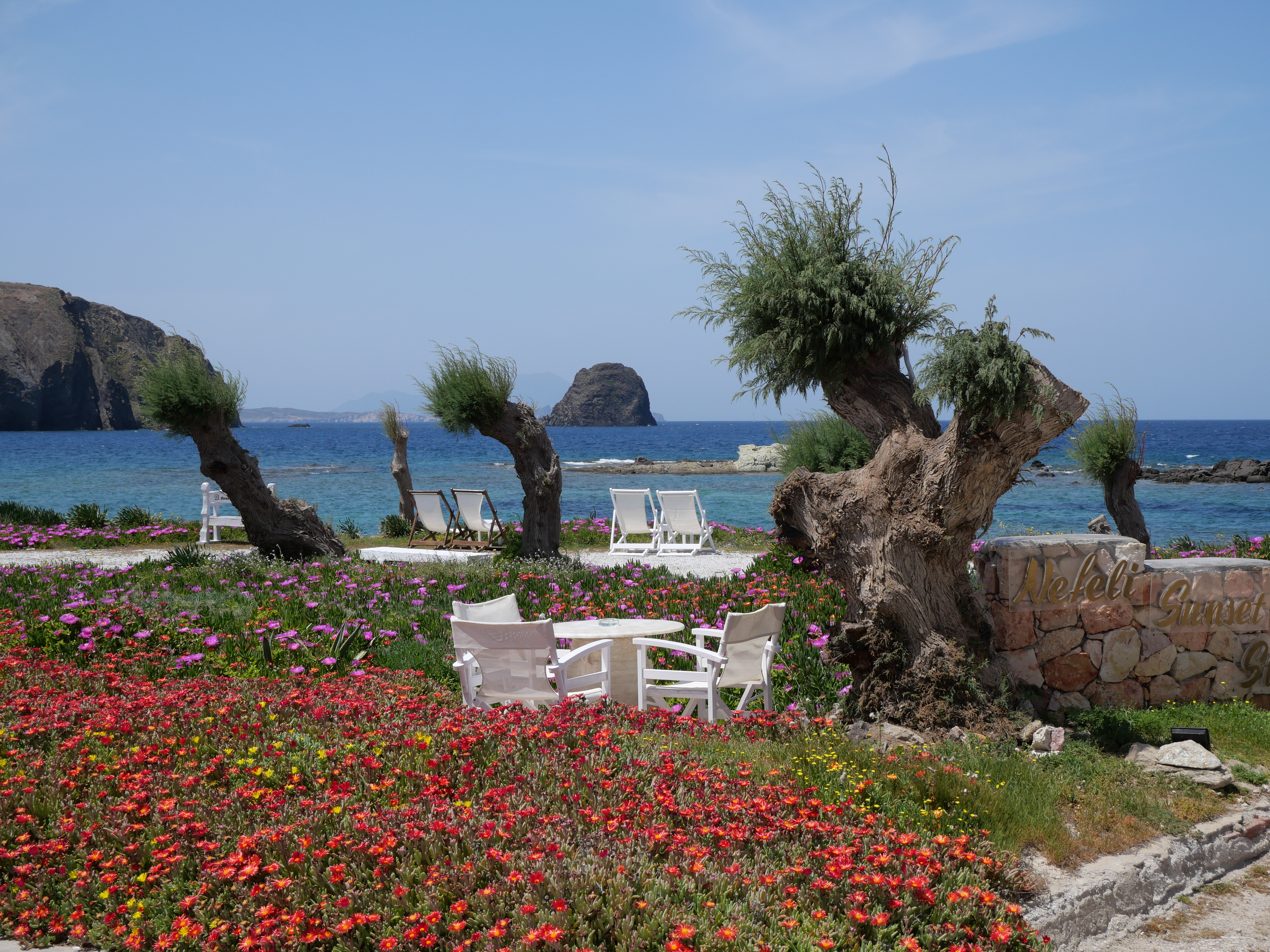 The lawn furniture belongs to Nefeli Sunset Studios, another excellent hotel choice, offering some ocean front studios at about a 50% surcharge over the rates at Ostria Vento. Both properties get a 5 star rating on Tripadvisor, my main resource in choosing hotels.
